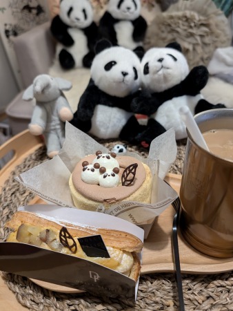 今日は帰りに上野駅で双子パンダロールケーキとスイートポテトのエクレアを買いました。