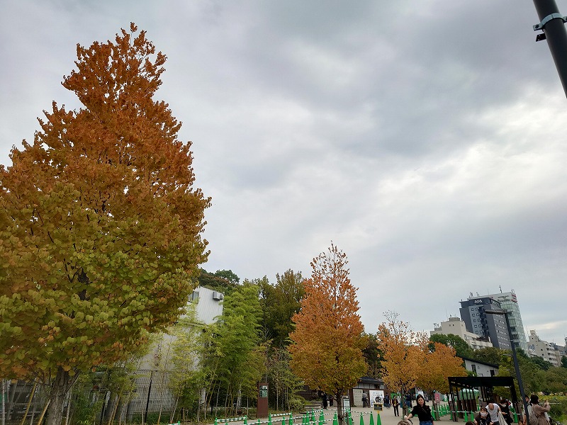 園内はすっかり木々は黄色く紅葉していますが、近くにある清水観音堂の月の松はまだ紅葉しておりませんでした。